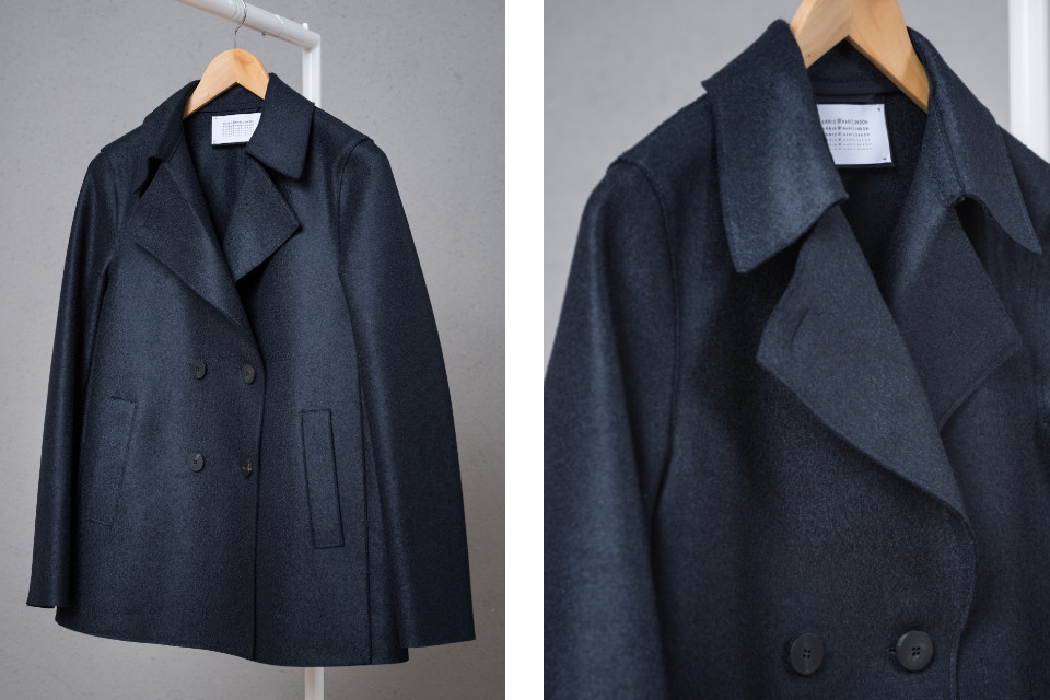 SAILOR COAT // Aus 100 % Virgin wool – knitted boiled // Oversized shape // Knielänge // seitliche Eingriffstaschen // Zweireiher // Made in Italy // Farbe Midnight Melange