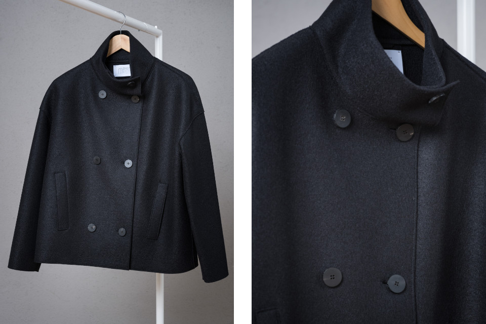 WOMEN CROPPED JACKET // Aus 100% pressed Virgin Wool // Oversize Fit – cropped // Zweireiher // Trichter – Kragen // Made in Italy // Farbe black