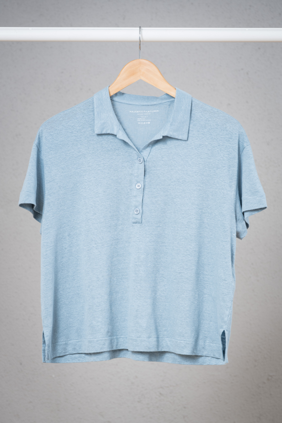 Sommer 2025POLO T-SHIRT // feine Leinen-Elasthan Qualität // relaxed fit // Farbe ocean
