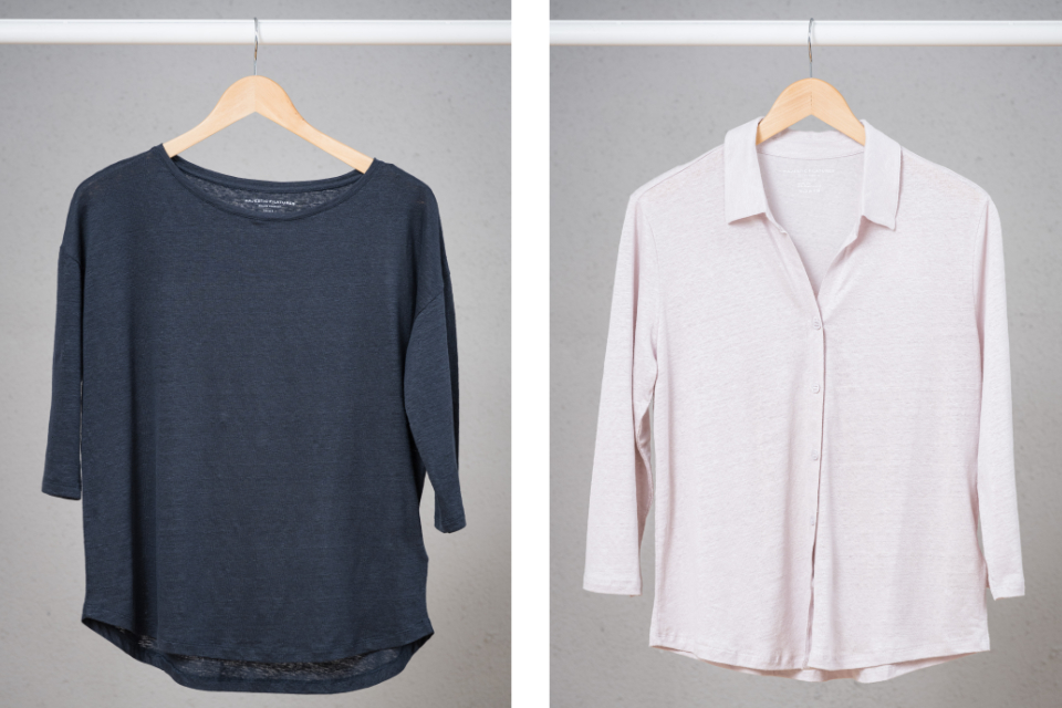 Shirt 3/4 sleeve // feine Leinen – Elasthan Qualität // schmale Silhouette // U-Boot-Ausschnitt // Farben zartes rosé und marine