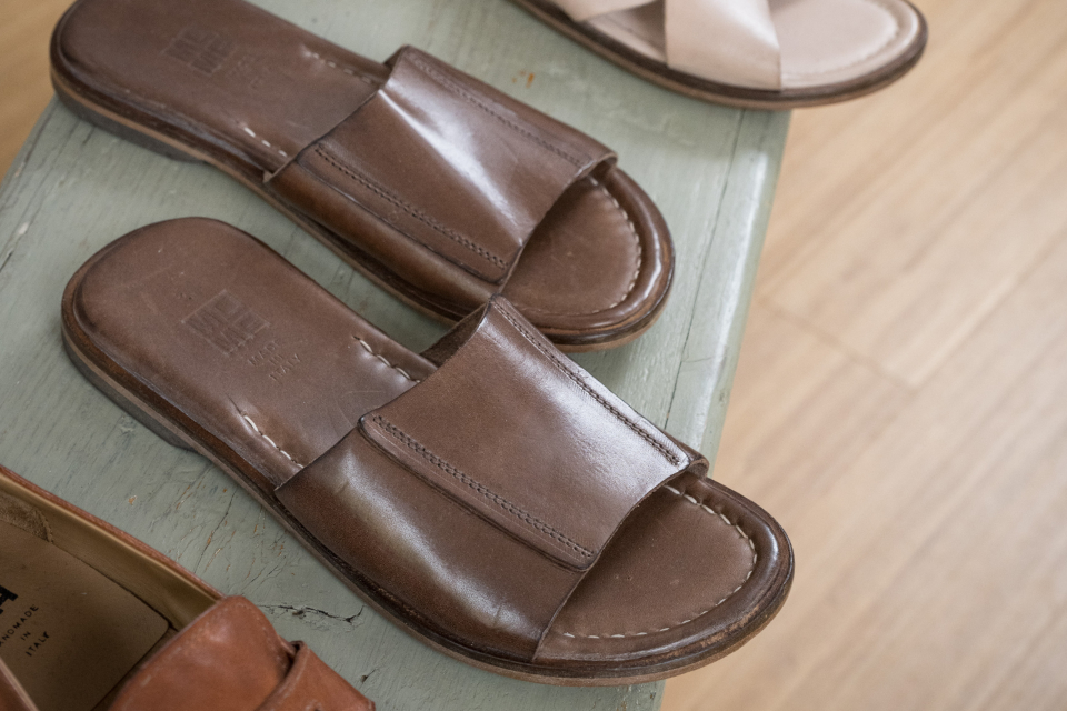 DAMEN PANTOLETTE // Vintage Optik // 100 % Glattleder // Leder-Gummi Sohle // Made in