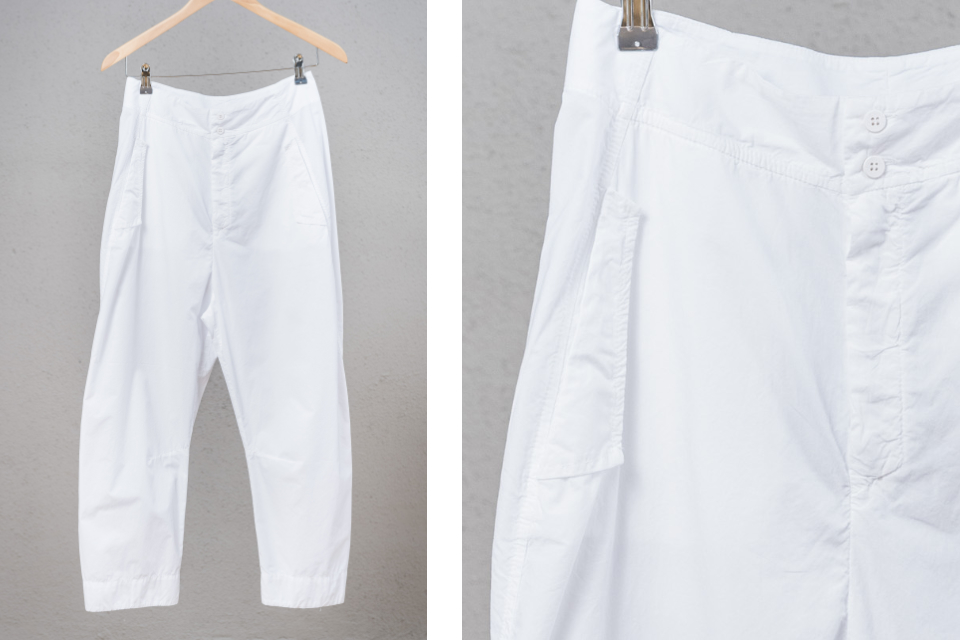 TROUSERS RELAXED FIT // aus einem leichten 100 % Cotton – Popelin // raffinierte Barrel – Schnittführung // mit seitlichen Eingriffstaschen und Gesäßtaschen // Farbe weiß