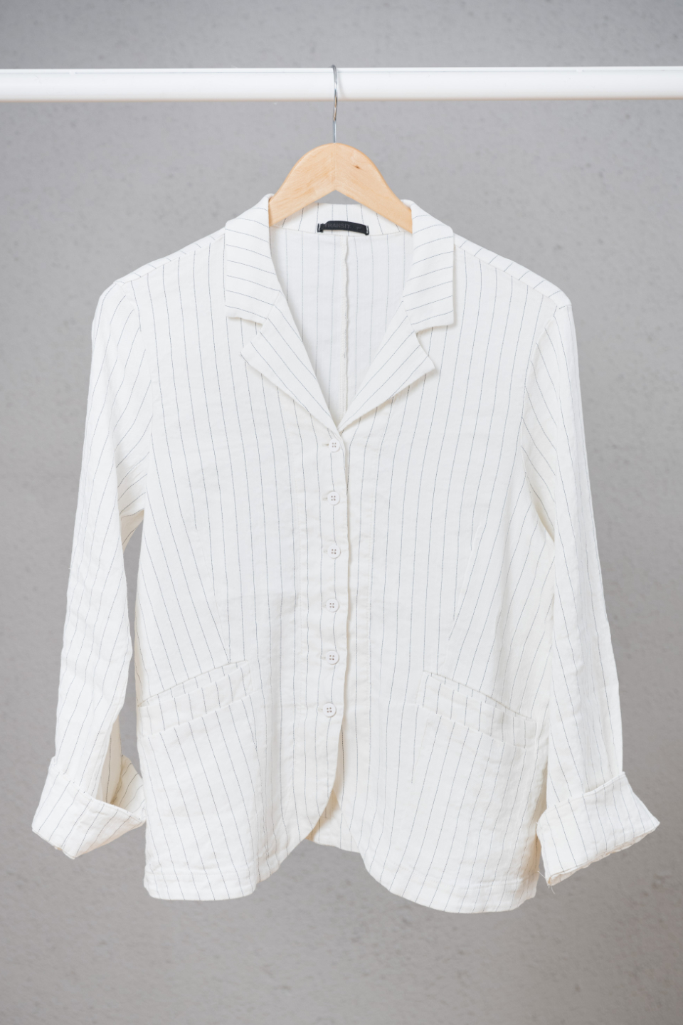 JACKET RELAXED FIT // Pin stripes aus Leinen – Viskose mit Elasthan Anteil // leicht ausgestellte Schnittführung // kurzer Revers // Farbe milk