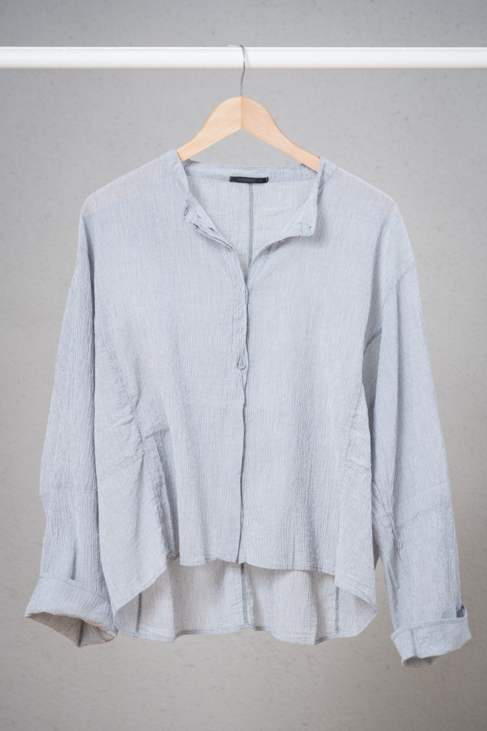 SHIRT OVERSIZE // Stripes in 100 % Cotton Crepe // kleiner Stehkragen mit verdecker Knopfleiste // Farbe pearl grey