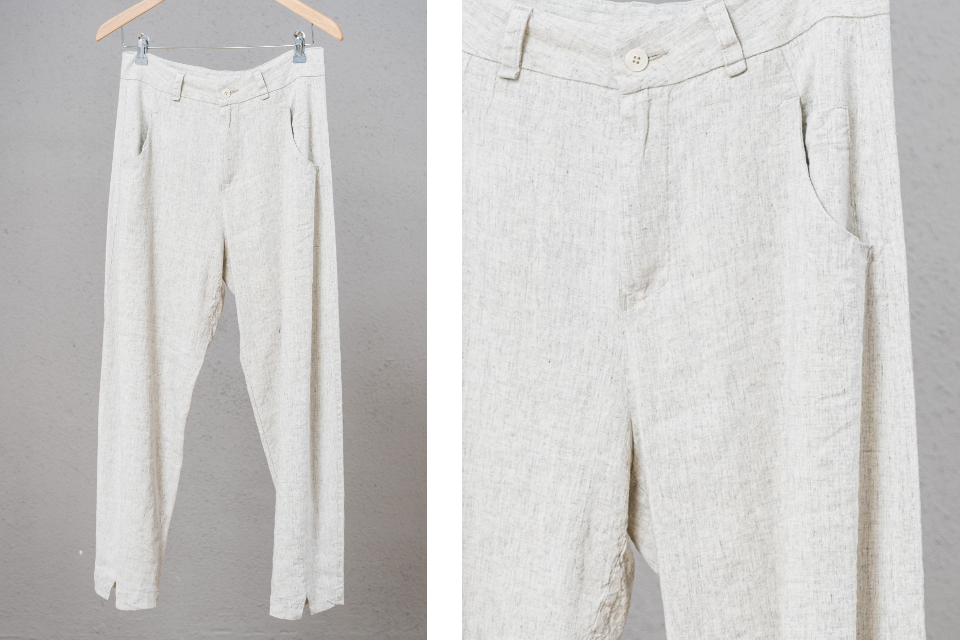 TROUSERS RELAXED // leichte Leinen Qualität // relaxed fit – carrot leg // cropped length // seitliche Eingriffstaschen // Farbe ivory